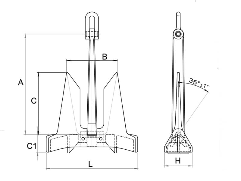 The AC-14 Anchor is a proven high holding power (HHP) drag embedment anchor, widely used for commercial marine, port and offshore mooring applications. Its geometry provides reliable penetration and stable holding performance across a range of seabed conditions.