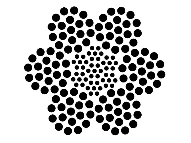 A versatile, medium-lay rope with six outer strands of ~19 wires over a fibre core.